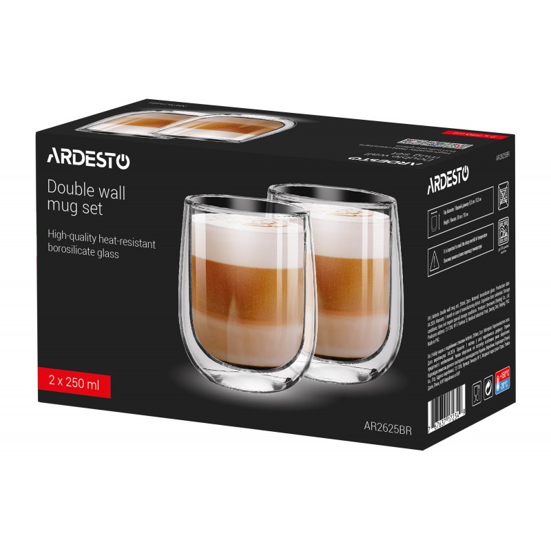 ARDESTO Набір чашок з подвійними стінками, 250мл, 2шт, боросилікатне скло, прозорий