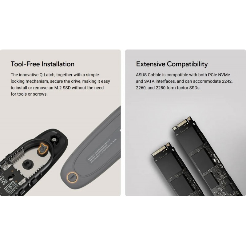 ASUS ESD-A1A COBBLE (90DD02R6-M09000) — це універсальний корпус для M.2 NVMe SSD, який дозволяє легко перетворити ваш внутрішній накопичувач на портативний зовнішній диск із надвисокою швидкістю передачі даних.