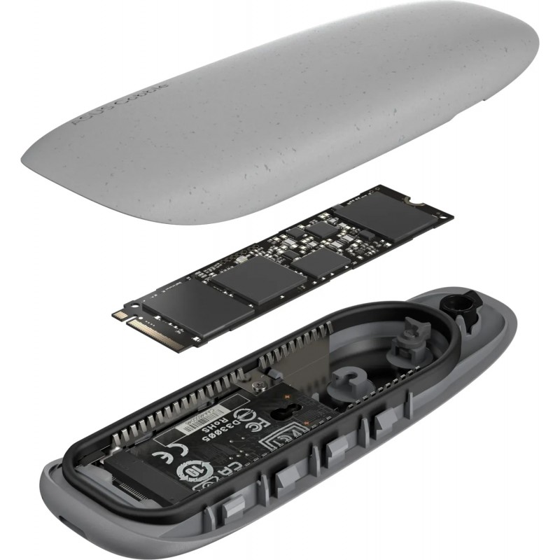 Корпус виготовлено з алюмінію зі стильним сірим анодованим покриттям, що не лише виглядає преміально, а й сприяє ефективному пасивному охолодженню. Завдяки компактному розміру та малій вазі, його легко взяти із собою в сумку або кишеню.