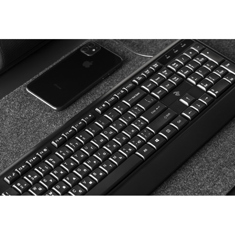2E Клавіатура мембранна KS130 105key, USB-A, EN/UK/RU, чорний