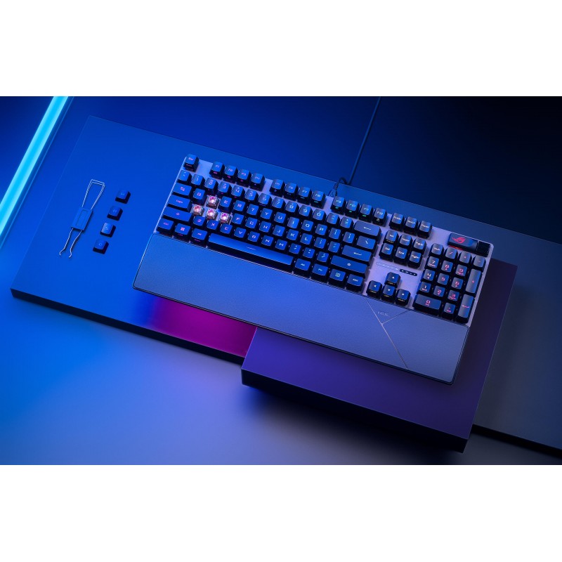 Двокомпонентні ковпачки ROG, виготовлені з PBT-пластика методом лиття під тиском, забезпечують довговічність і тактильні відчуття продукту преміум-класу. Клавіші мають оптимізовану для ігор конструкцію: використовуються ковпачки середньої висоти (як у ковпачків Cherry) й укорочений шток у порівнянні з іншими рішеннями для зменшення розгойдування клавіш і підвищення комфорту користувача.