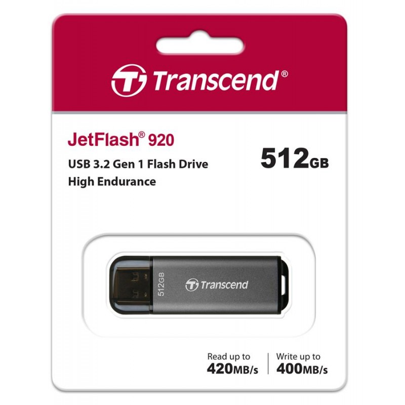JetFlash 920 має містку пам'ять об'ємом до 512 ГБ, що дозволяє переносити, зберігати та обмінюватися файлами простіше, ніж будь-коли раніше.