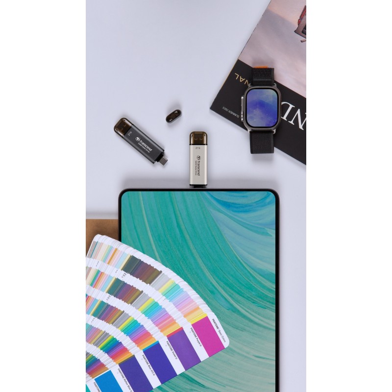 Transcend TS1TESD310C 1 TB — надкомпактний зовнішній SSD з об’ємом 1 ТБ, що підтримує USB 3.2 Gen 2 з максимальною швидкістю передачі даних до 10 Гбіт/с. Читання до 1050 МБ/с і запис до 950 МБ/с забезпечуються завдяки технології SLC-кеша і 3D NAND. Форм‑фактор «флешки» з двома конекторами (USB-A і USB-C) значно спрощує використання на різних пристроях.