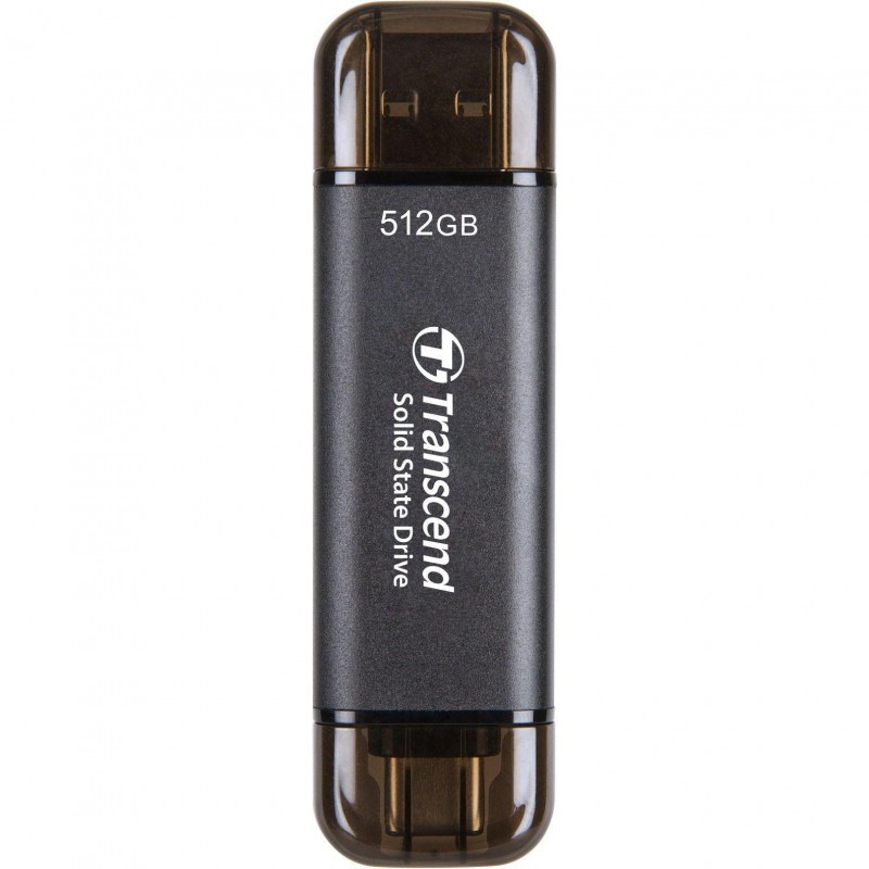 Transcend ESD310 512 GB — надкомпактний зовнішній SSD з об’ємом 512 ГБ, що підтримує USB 3.2 Gen 2 з максимальною швидкістю передачі даних до 10 Гбіт/с. Читання до 1050 МБ/с і запис до 950 МБ/с забезпечуються завдяки технології SLC-кеша і 3D NAND. Форм‑фактор «флешки» з двома конекторами (USB-A і USB-C) значно спрощує використання на різних пристроях.