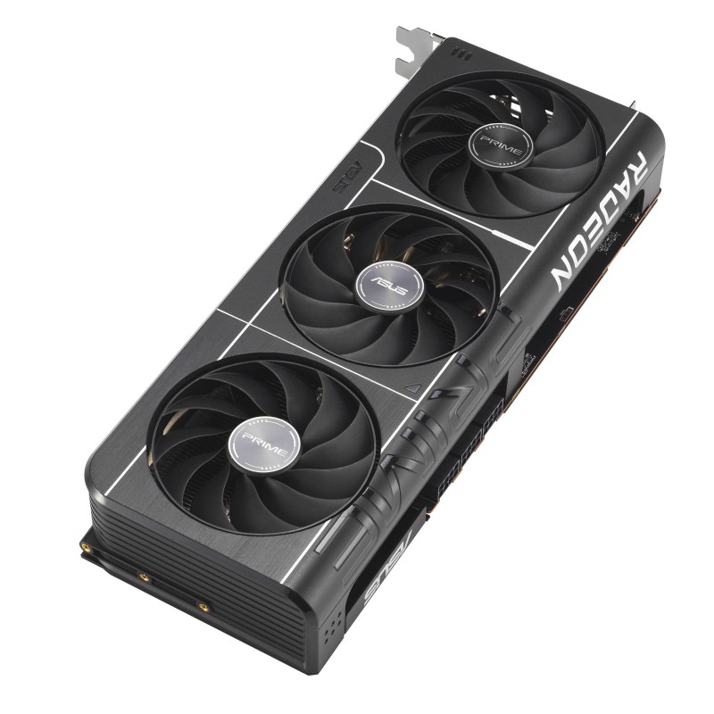 Prime Radeon RX 9070 XT має 2,5-слотову конструкцію з ретельно продуманим розташуванням кожуха, радіатора та теплових трубок, що дозволяє трьом вентиляторам Axial-tech ефективно використовувати вентиляцію бічних панелей корпусу та забезпечувати оптимальну теплову продуктивність.