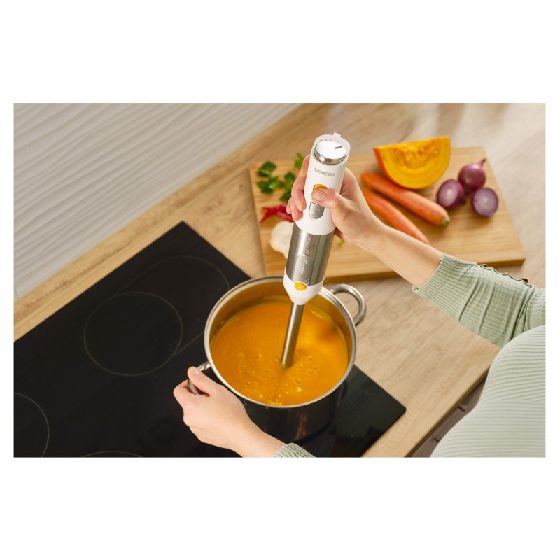 Sencor Блендер заглибний, 1200Вт, 5в1, чаша-800мл, вспінювач молока, білий