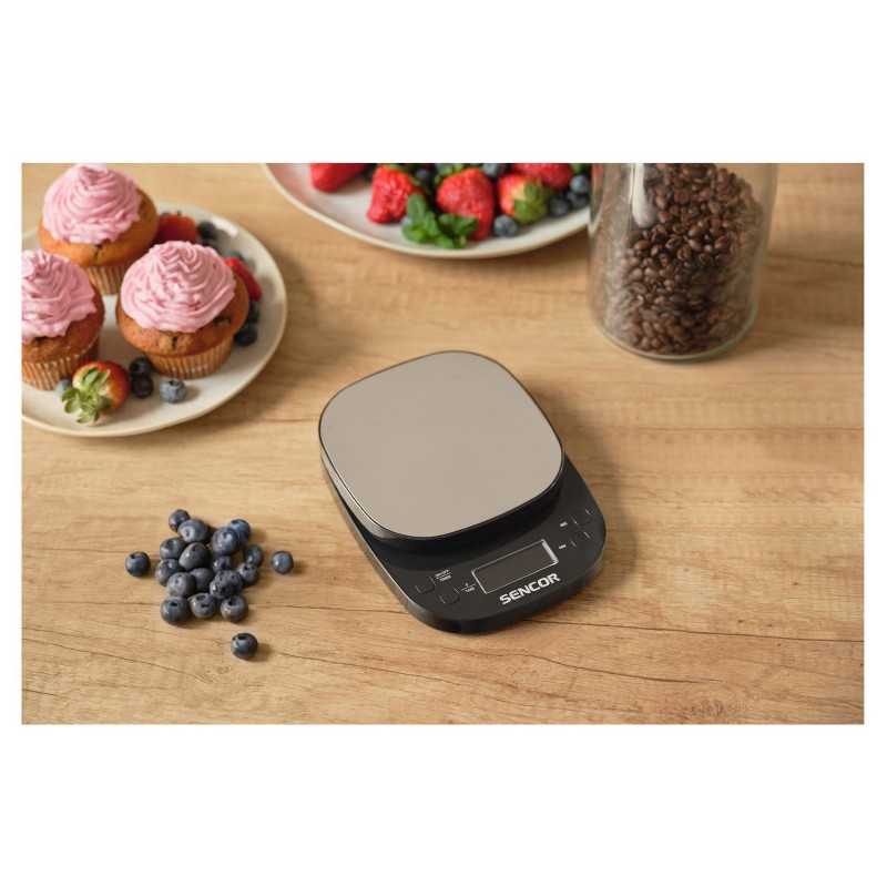 Sencor Ваги кухонні для кави, 2кг, АААx3, регулювання гравітації, пластик, чорний-нержавіюча сталь