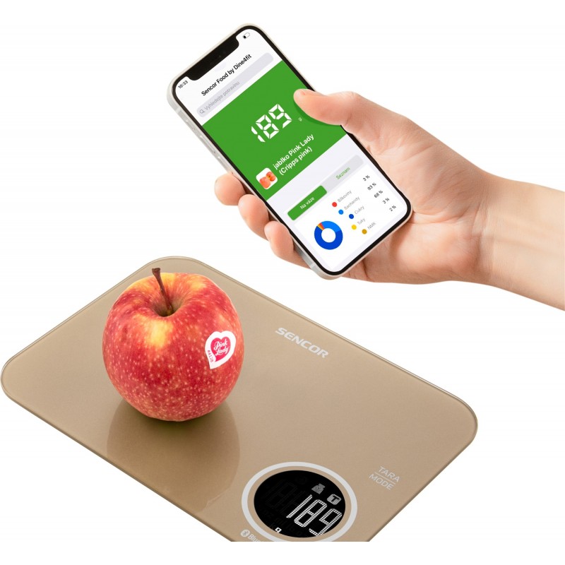 Sencor Ваги кухонні, 5кг, підключення до смартфону, AAAx2, пластик, бронзовий