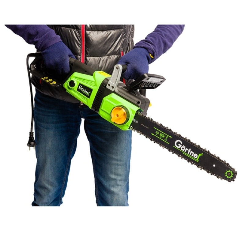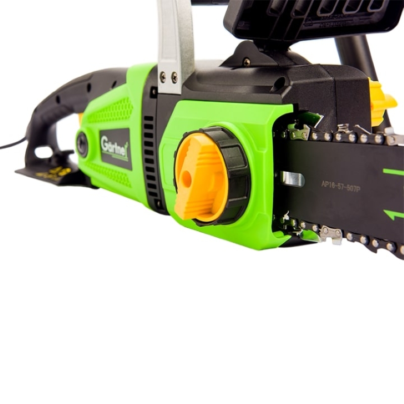 Інерційне гальмо ланцюга забезпечує зупинку руху пилки за частки секунди при віддачі. Гальмування ланцюга спрацьовує вручну або автоматично. Виріб має зручний і безпечний пристрій для ручного натягування ланцюга без використання інструментів.