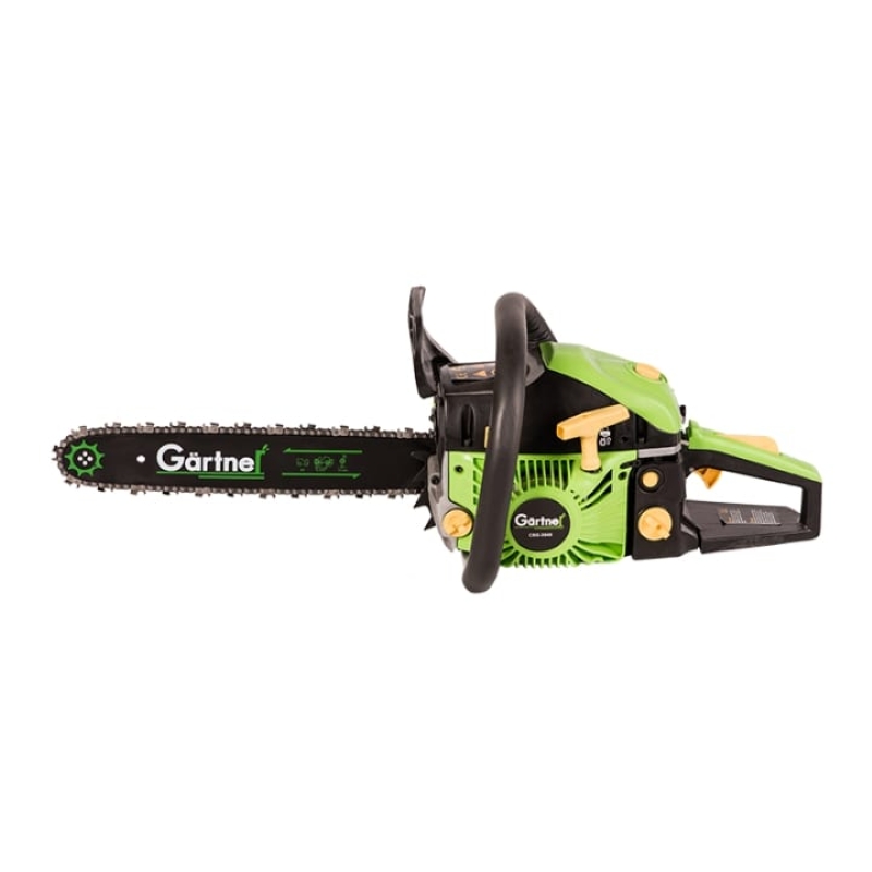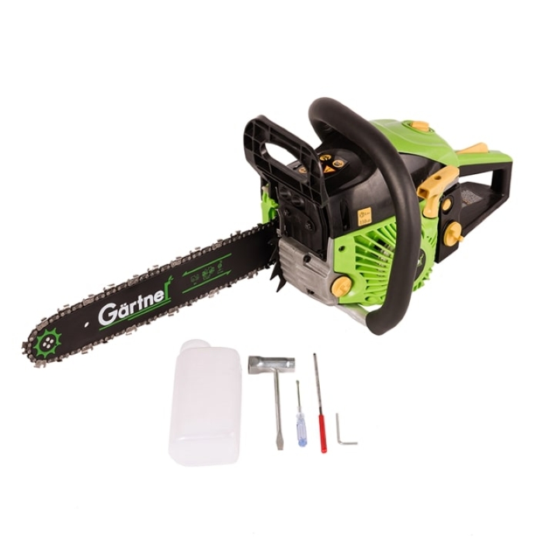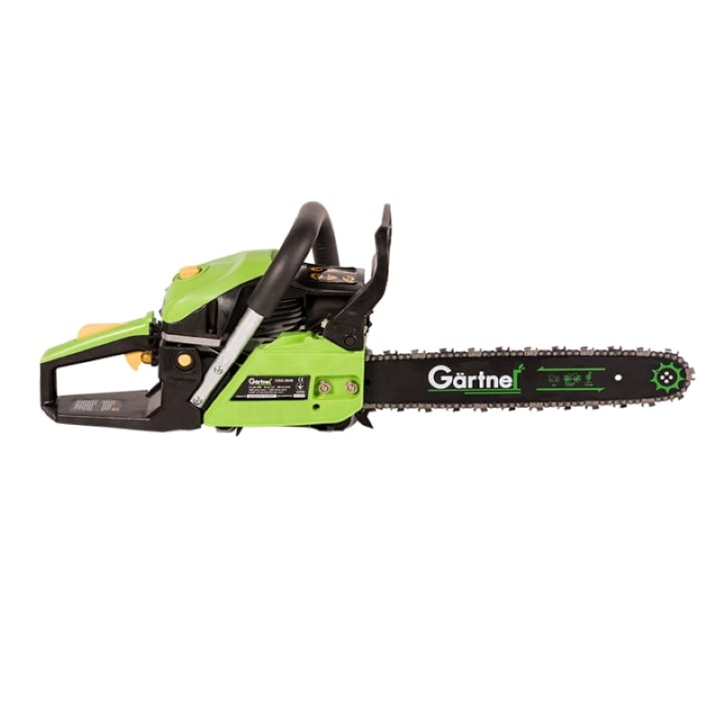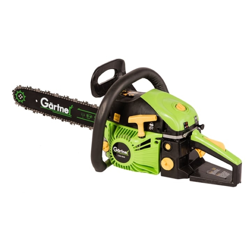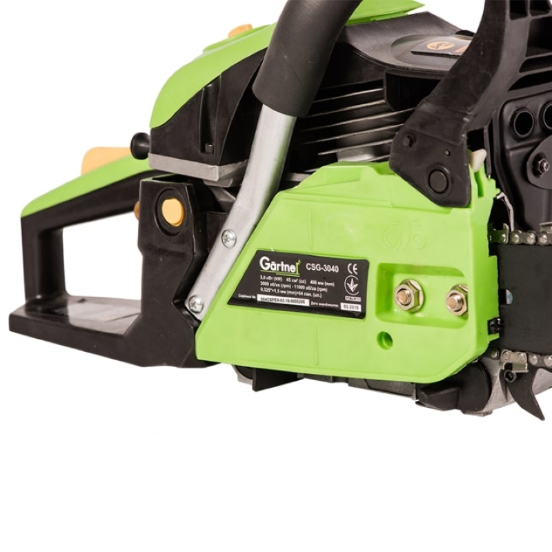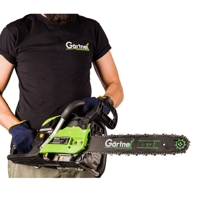 Пила бензинова Gartner CSG-3040 призначена для пиляння дерев. Принцип роботи виробу полягає в почерговому різанні лезами ланок ланцюга, який рухається в направляючих з великою швидкістю.