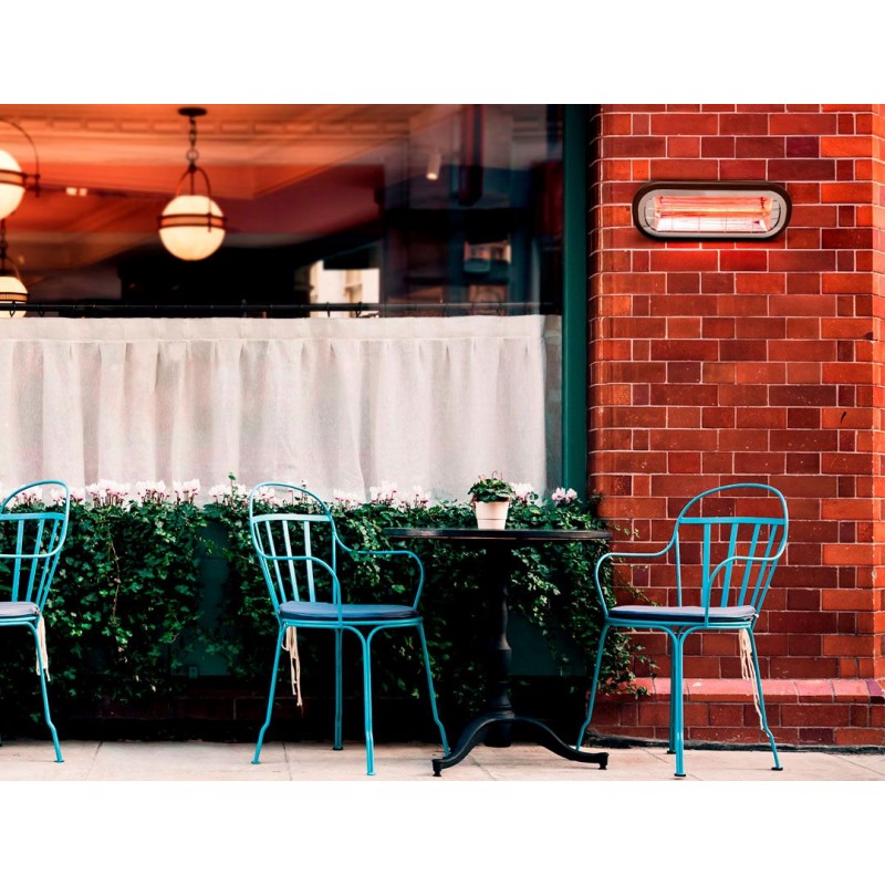 Характеризується швидким нагріванням, завдяки чому тепло відчувається одразу. Безпечна та економічна альтернатива основному чи допоміжному опаленню. Обігрівач має високоякісний нагрівальний елемент з лампою бурштинового кольору з низьким рівнем ефекту сліплення, що забезпечує радіус дії до 24 м2. Час роботи випромінювача оцінюється до 6000 год. Корпус пристрою має бризкозахист IP65, що дозволяє використовувати його як у приміщенні, так і на вулиці. Сучасне джерело тепла просте у встановленні та використанні.