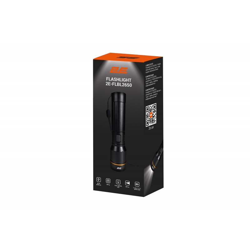 2E Ліхтар ручний акумуляторний FLBL2650, USB-C, 5000мА•год, 2000лм, 20Вт, 5 функцій освітлення, IP44