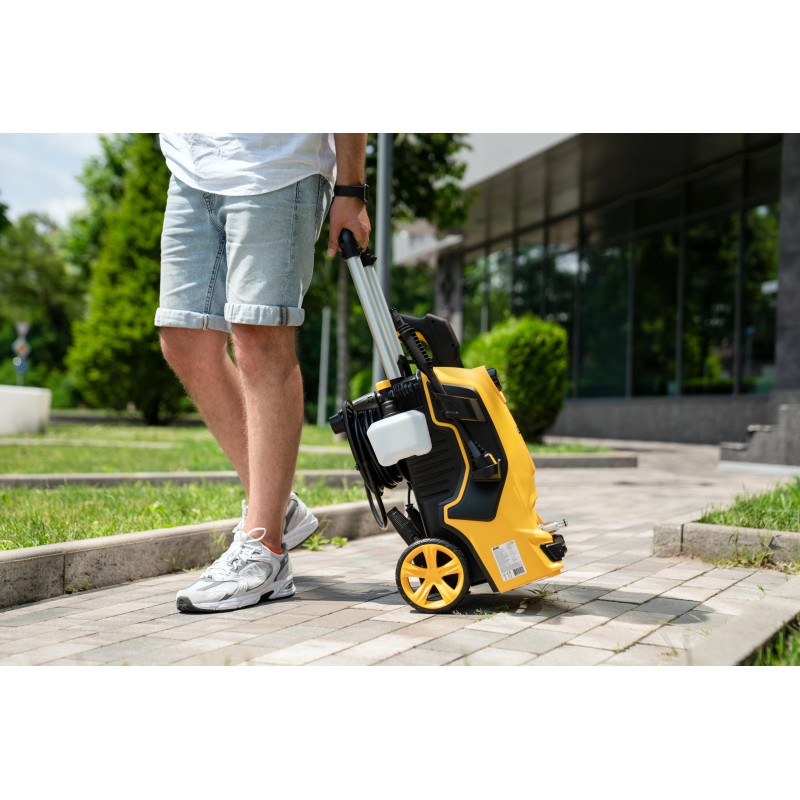 Задля ефективної роботи й зручності використання модель має низку корисних функцій, зокрема передбачено можливість регулювання тиску струменя й потужності. За автоматичне зупинення двигуна мийки, який, до речі, має захист від перегрівання, відповідає Auto-Stop, що спрацьовує в разі вивільнення курка на пістолеті розпилювача. Оскільки під час миття вода розбризкується, корпус моделі захищено за стандартом водонепроникності IPX5.