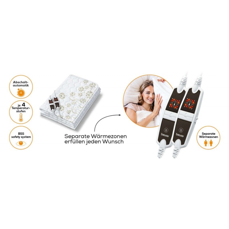 Beurer Електропростирадло, 150 х 160 см, 60+60Вт, фліс, білий