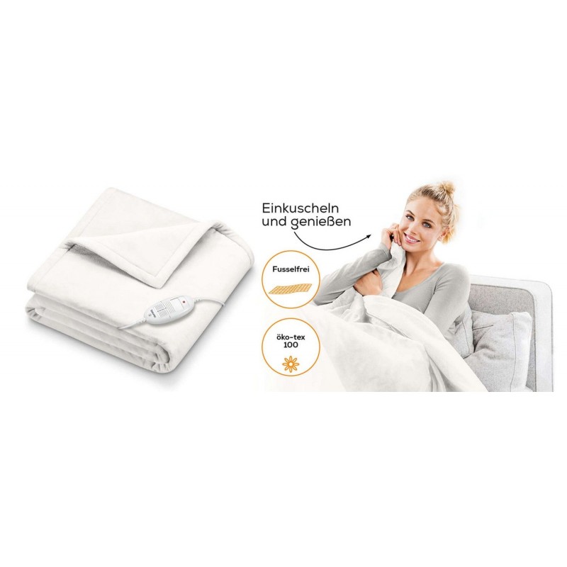 Beurer Електроковдра, 180х130см, 100Вт, 6 режими, фліс, сірий