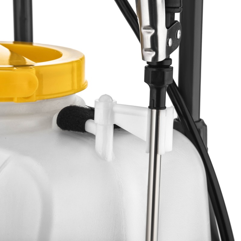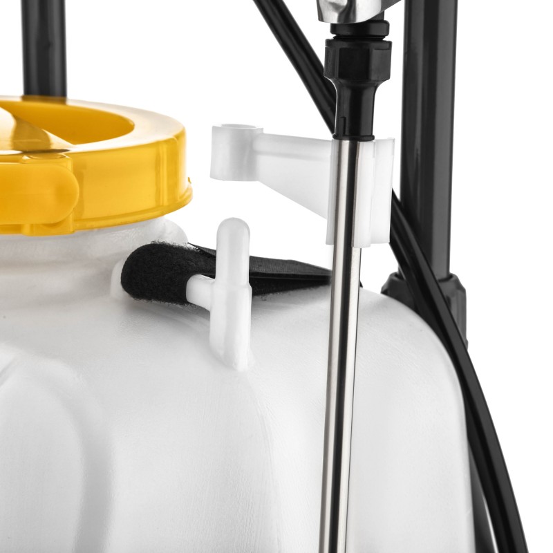 Об’єм бака становить вражаючі 40 л, що робить обприскувач чудовим рішенням для великомасштабних робіт, як-то дезінсекція, дезінфекція та боротьба з бур’янами на великих територіях. Робочий тиск варіюється в межах від 0 до 7 бар – запорука потужного та рівномірного розпилення, а продуктивність 6 л/хв гарантує швидке та ефективне оброблення. Дальність розпилення – до 8 м.