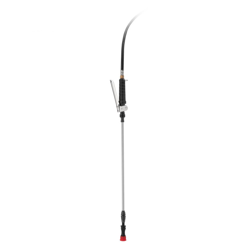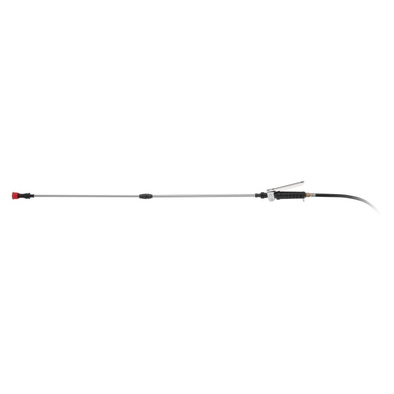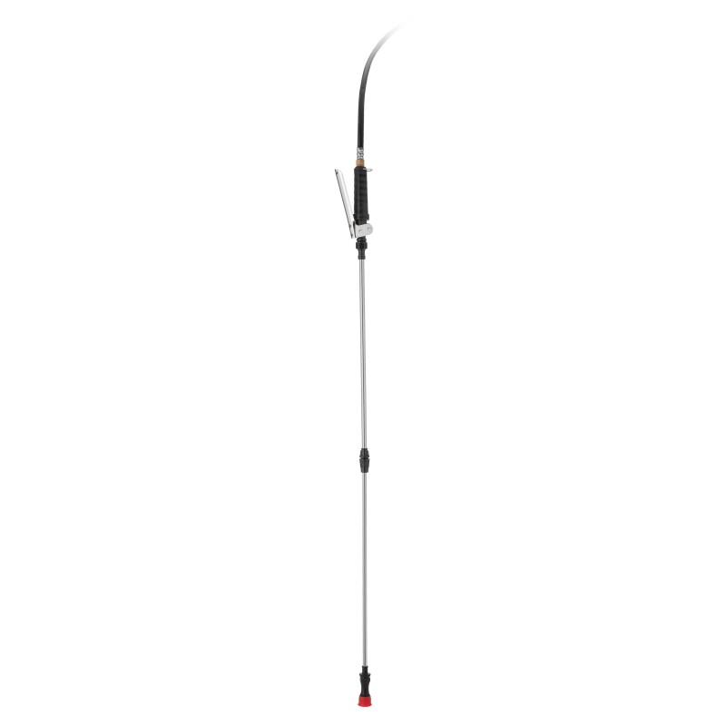 Вага нетто обприскувача становить 16 кг, проте це аж ніяк не впливає на мобільність, адже одними з визначальних особливостей моделі є наявність коліс та ергономічного руків’я, а також 30-метровий шланг і регульована за довжиною штанга (450-770 мм). Усе це дає змогу легко переміщатися великою територією та діставати до важкодоступних місць або високих гілок, що значно спрощує процес обприскування та зменшує фізичне навантаження.