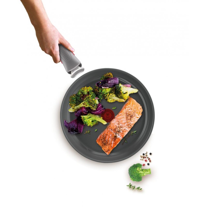 Після смаження на плиті перемістити страву одразу в духовку – з посудом Ingenio це не проблема! І не потрібно витрачати час на перекладання в інший посуд, адже ручка легко знімається.