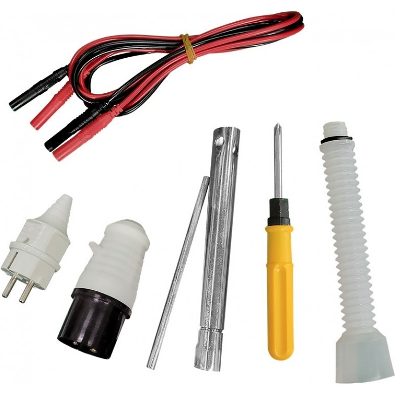 Генератор укомплектований додатковими аксесуарами: ключ свічковий, лійка для зручного заливання моторної оливи, шнур для паралельного підключення, вилка 16А Schuko, викрутка РН2 6,0 мм, вилка 32А CEE.