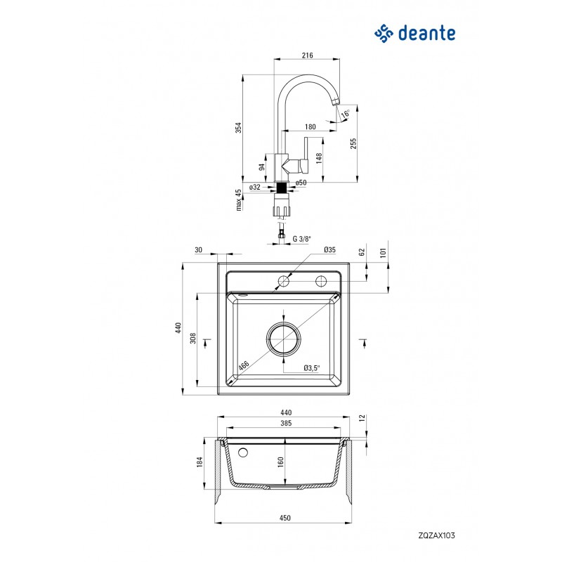 Deante Набір для кухні Zorba, гранітна мийка ZQZ_7103 + зміш. BEN_762M, пісок