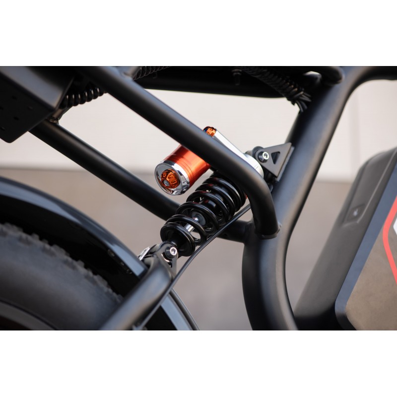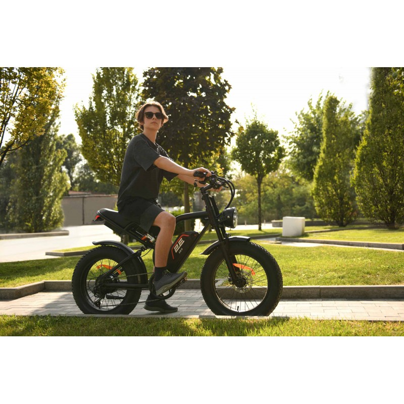 Велике зручне сидіння, а також передні й задні амортизатори, забезпечують гідний рівень комфорту під час їзди. Незалежно від того, наскільки важкою буде дорога, цей електровелосипед забезпечує максимальну зручність і плавність руху. Ємність батареї становить 15 А·год, зокрема одного заряду вистачить на поїздку дальністю до 45 км. Заряджання здійснюється через джерело електричного струму з вхідною напругою 100–240 В.