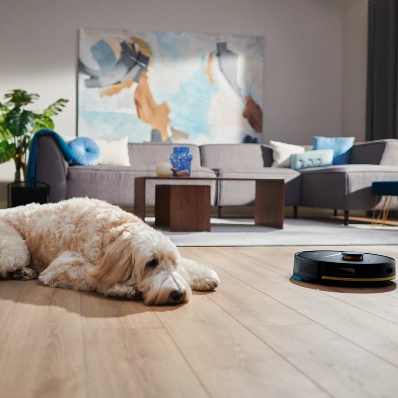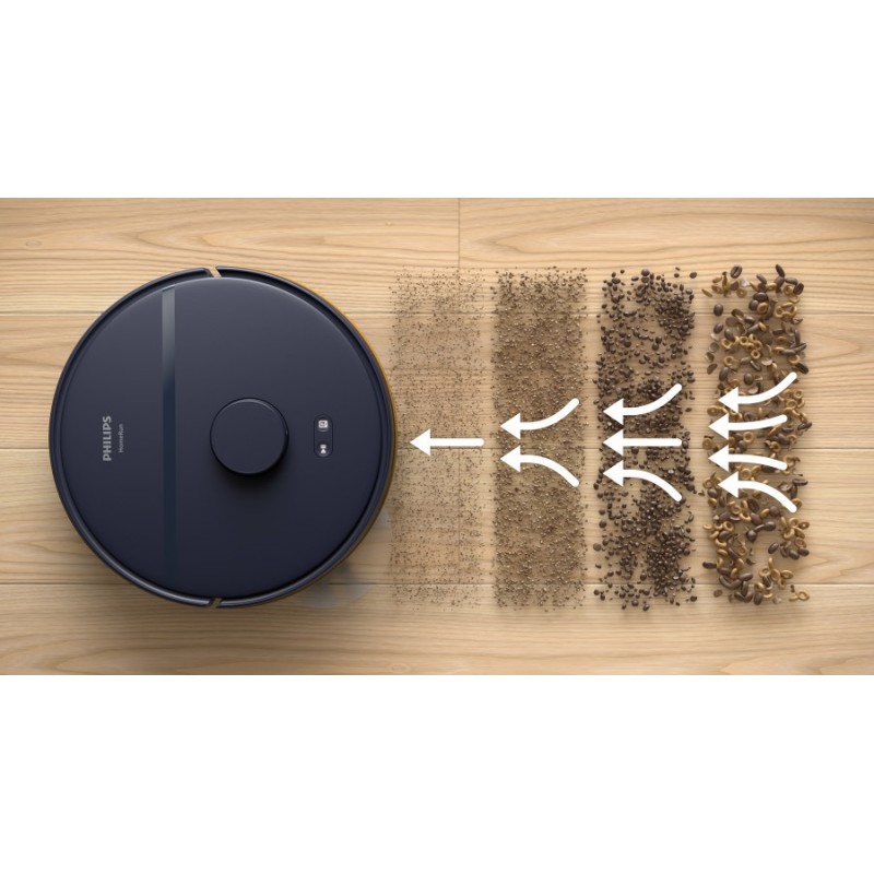 Цей робот-пилосос одночасно виконує сухе і вологе прибирання твердих підлогових покриттів, збираючи шар пилу, що накопичується щодня. Він ефективніше видаляє пил, ніж пилосос без вологого прибирання, і після його роботи ви зможете ходити по дому босоніж.