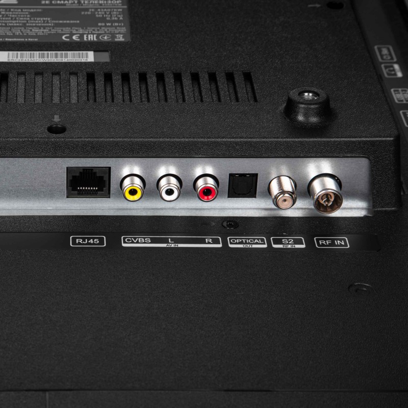 Модель 2E-43A07KF продумано до дрібниць. Компактний розмір і доволі невелика вага (6,1 кг без паковання), стильний дизайн і можливість настінного монтажу за стандартом VESA 200 × 100 зумовлює можливість встановити телевізор у будь-якому приміщенні. Кут огляду 178°/178° забезпечує якісний перегляд під будь-яким кутом, тому відтворення контенту буде однаково чітким і контрастним незалежно від того, де розташувався глядач.