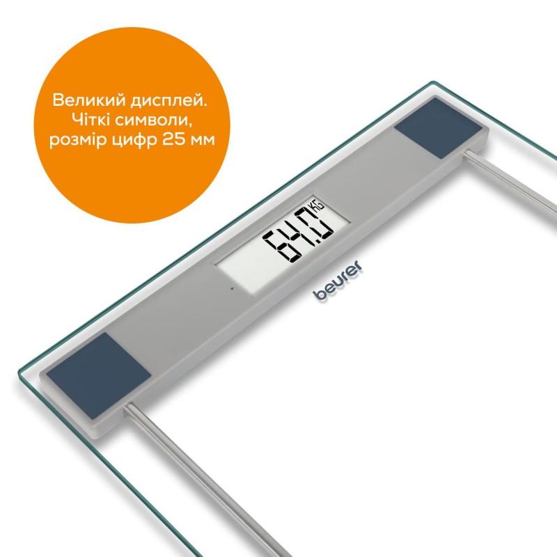 Beurer Ваги підлогові, 150кг, 1хCR2032, скло, срібний