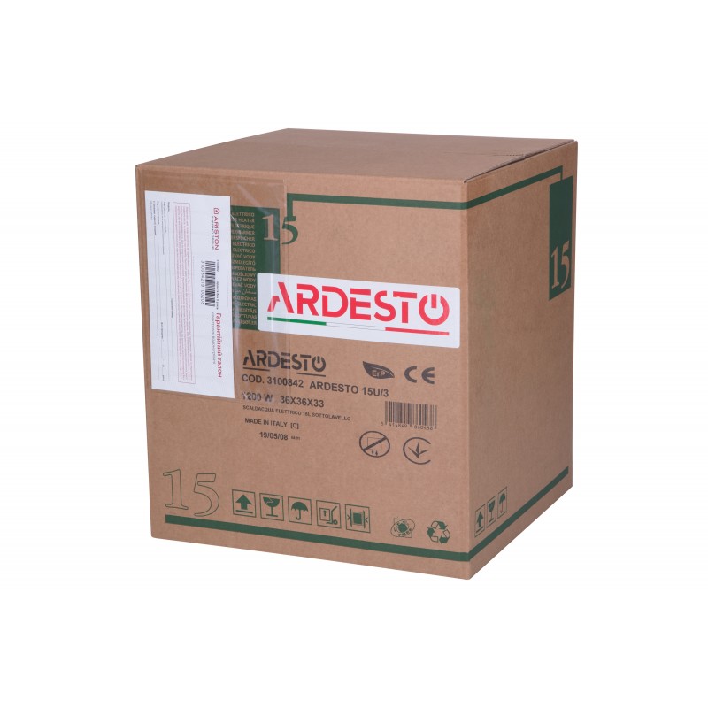 Ardesto EWH-15OMWMI вироблено в Італії, що гарантує стабільну роботу та високий рівень якості. Гарантія на бак складає 2 роки, а на електроніку – 1 рік. При заміні магнієвого анода 1 раз у 2 роки, гарантійне обслуговування баку продовжується одноразово на 1 рік.