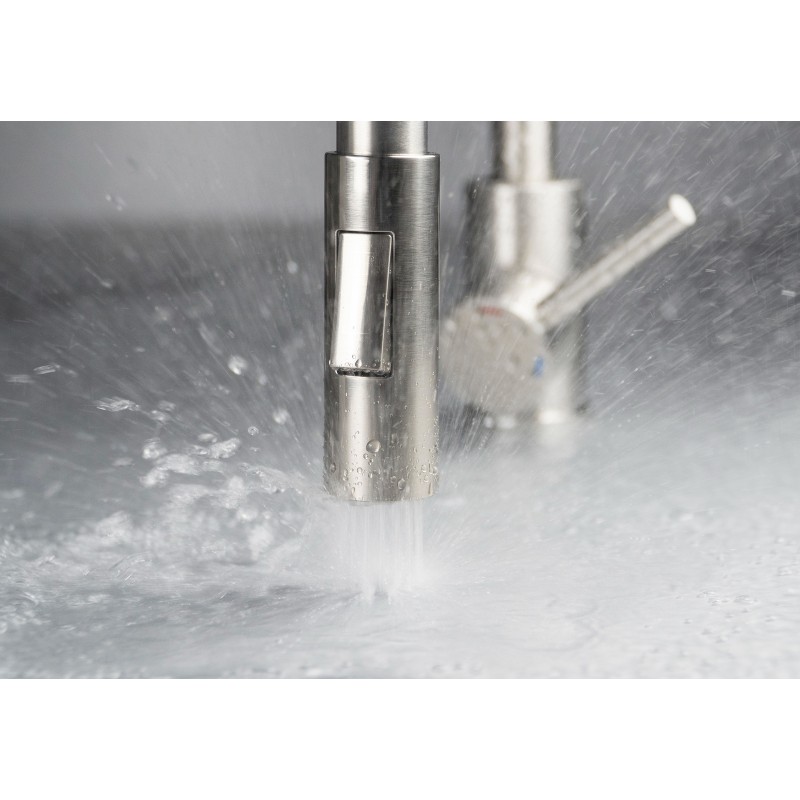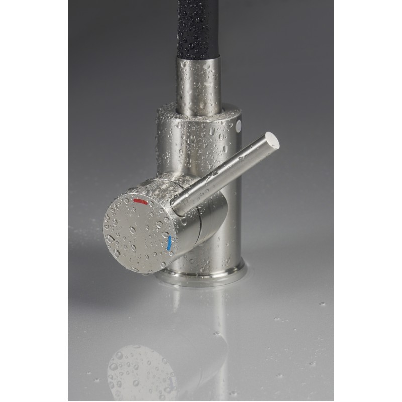 Змішувач BOC_B740 поєднує елегантний вигляд з високою функціональністю. Поворотний вилив дає можливість легко працювати з водою в будь-якому напрямку, що робить процес миття посуду значно зручнішим. Завдяки графітовому покриттю, змішувач чудово гармоніює з мийкою та доповнює стиль інтер'єру кухні.