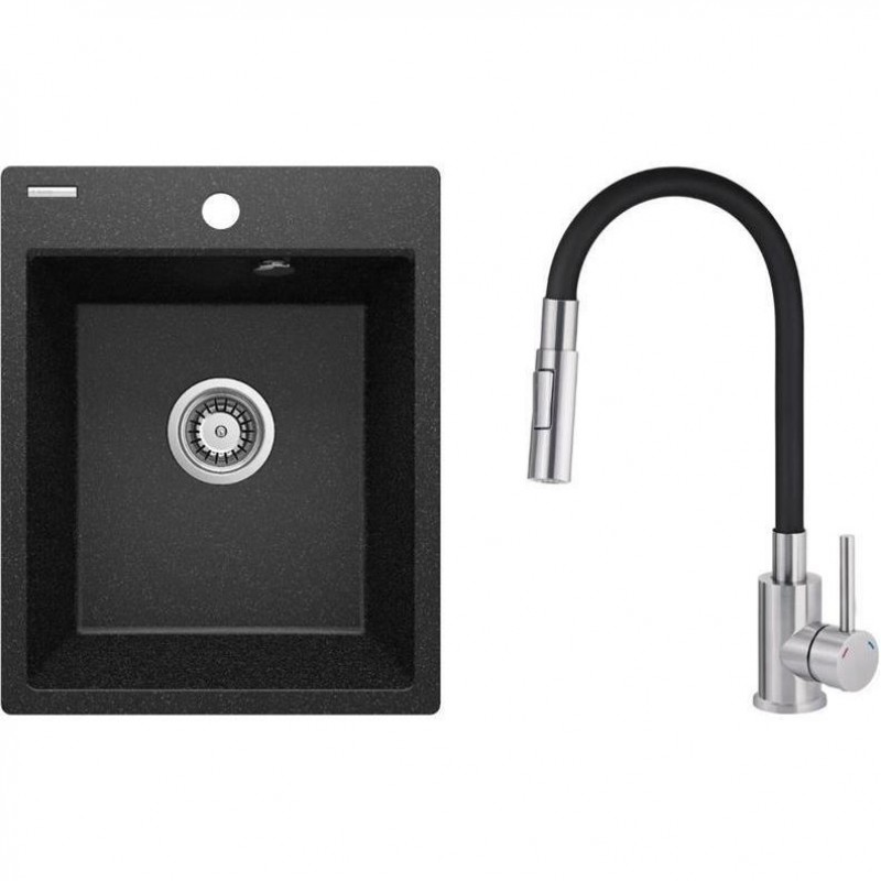 Deante Набір для кухні Corio, гранітна мийка ZRC_2103 + зміш. BOC_B740, графіт