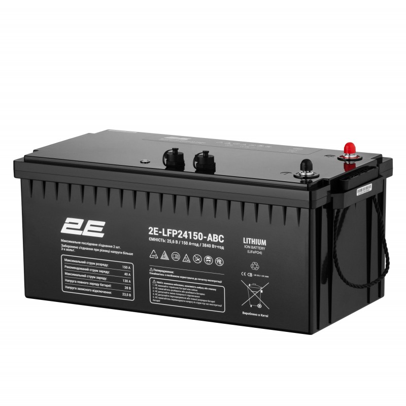 Батарея 2E LFP24 є надійним і довгостроковим джерелом енергії. З-поміж переваг LiFePo4-батареї – тривалий термін слугування, висока безпека та енергоефективність. Крім того, вона витримує велику кількість циклів заряджання / розряджання – 6 000 циклів. Номінальна напруга 25,6 В дає змогу ефективно використовувати батарею для різних пристроїв і систем. Висока ємність акумулятора 150 А·год забезпечує тривалий час роботи без необхідності частого заряджання. Широкі температурні межі працездатності: допускається заряд -3 °C - +65 °C / розряд -23°С - +65°С, рекомендовано використання за +10 ℃ - +25 ℃. Для досягнення більшої напруги передбачено можливість паралельного під’єднання до 4 пристроїв або послідовне – 2S (51,2 В).