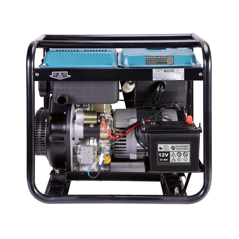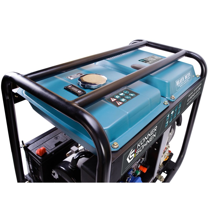 Для всіх моделей дизельних генераторів «Könner & Söhnen» в комплект входять додаткові гумові опори для захисту рами від корозії. Завдяки опорам, працюючий генератор не пошкодить покриття підлоги, а фарбування рами не буде подряпане.