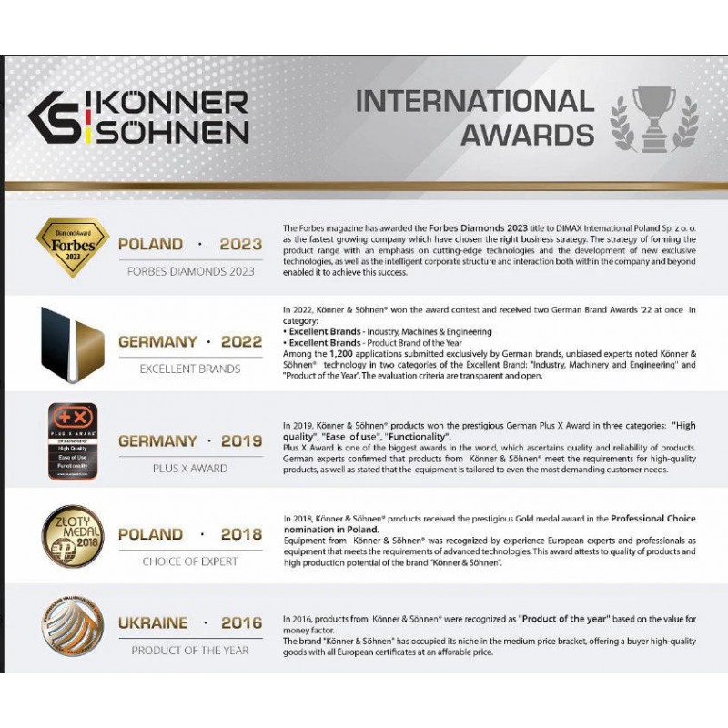 Генератори «Könner & Söhnen» серії «HEAVY DUTY» оснащені інтелектуальною системою стабілізації напруги AVR. Вона дозволяє утримувати вихідну напругу генератора на постійній величині 230В і захищає від небажаного короткого замикання та перенавантаження.
