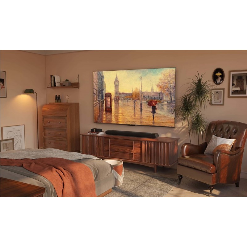 TCL 55T7B — це телевізор, який поєднує в собі стильний дизайн і передові технології для створення чудового домашнього кінотеатру. Завдяки великому 55-дюймовому екрану з роздільною здатністю 4K Ultra HD (3840 × 2160 пікселів), він відтворює неймовірно чітке і деталізоване зображення. Технологія HDR (High Dynamic Range) покращує контрастність і додає глибину кожній сцені, роблячи кольори яскравішими, а тіні — глибшими. Завдяки функції Motion Clarity, динамічні сцени відображаються плавно, що робить його ідеальним для перегляду спортивних матчів і екшен-фільмів.