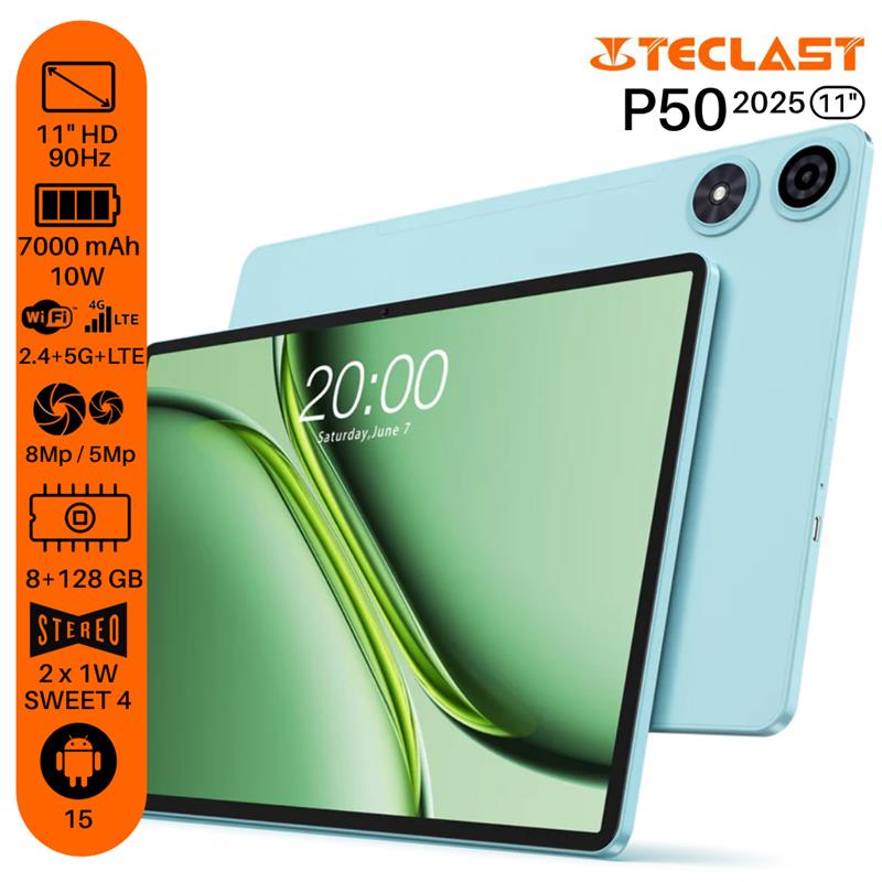 Оснащений восьмиядерним процесором Unisoc T606 і графічним процесором Mali-G57, P50 2025 підтримує до 20 ГБ оперативної пам'яті (8 ГБ базової з розширенням до 12 ГБ) і 128 ГБ пам'яті, забезпечуючи швидку багатозадачність і достатній обсяг пам'яті для додатків, медіа та іншого.