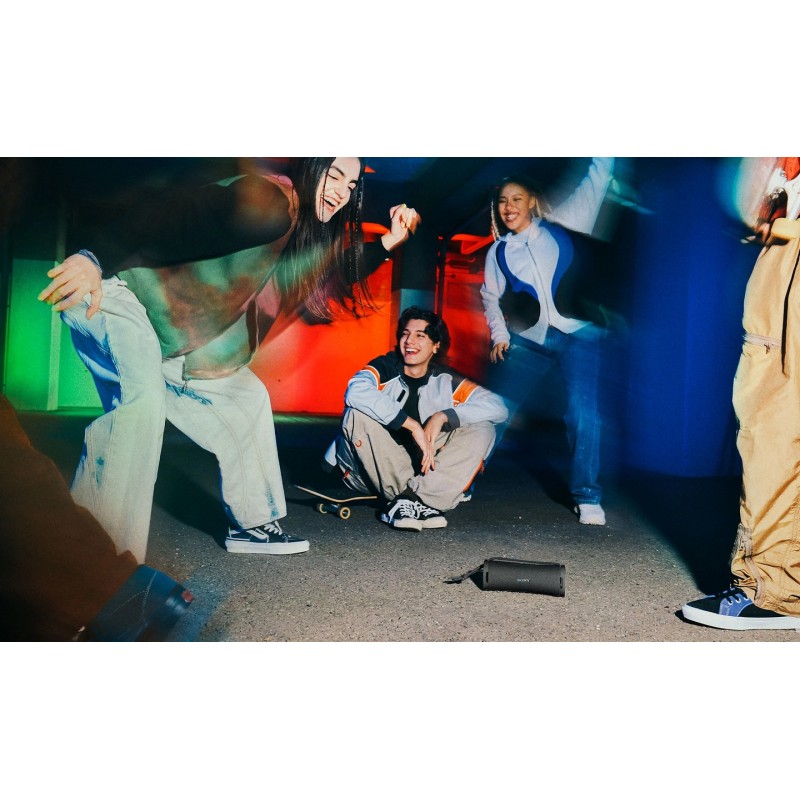Пристрій поєднує в собі зручний для перенесення дизайн, водонепроникність, захист від пилу та ударостійкість. Цю компактну акустичну систему можна взяти з собою куди завгодно завдяки універсальному ремінцю, а після прибуття ви зможете насолоджуватися музикою на вечірці довше завдяки тривалому часу роботи від акумулятора.