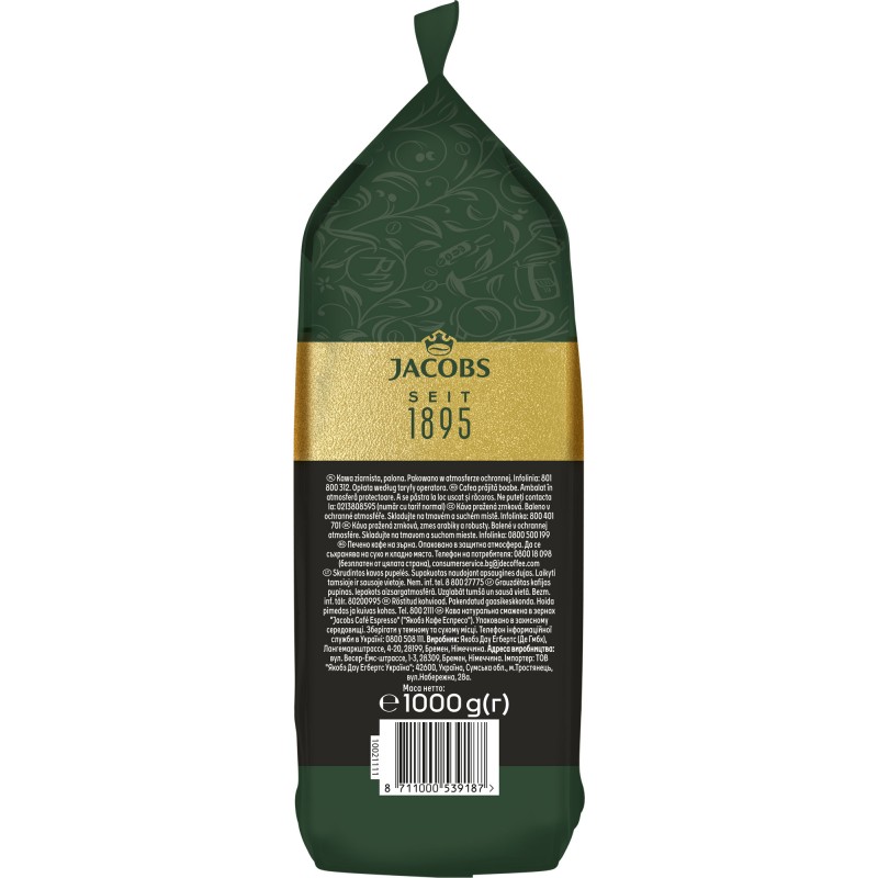 Кава Jacobs Espresso у зернах створена спеціально для приготування міцного та ароматного еспресо. Завдяки поєднанню арабіки та робусти бленд має глибокий смак, насичений аромат і приємну гірчинку, яка додає напою характерності. Ретельне обсмаження зерен дозволяє розкрити їхню природну інтенсивність та забезпечує щільне тіло кави. Jacobs Espresso підходить не лише для еспресо, але й для напоїв із молоком — капучино чи лате. Велика упаковка 1 кг робить його практичним вибором для щоденного використання вдома, в офісі або кав’ярні.
